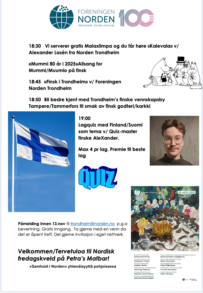 Velkommen/Tervetuloa til Nordisk fredagskveld på Petra’s Matbar!